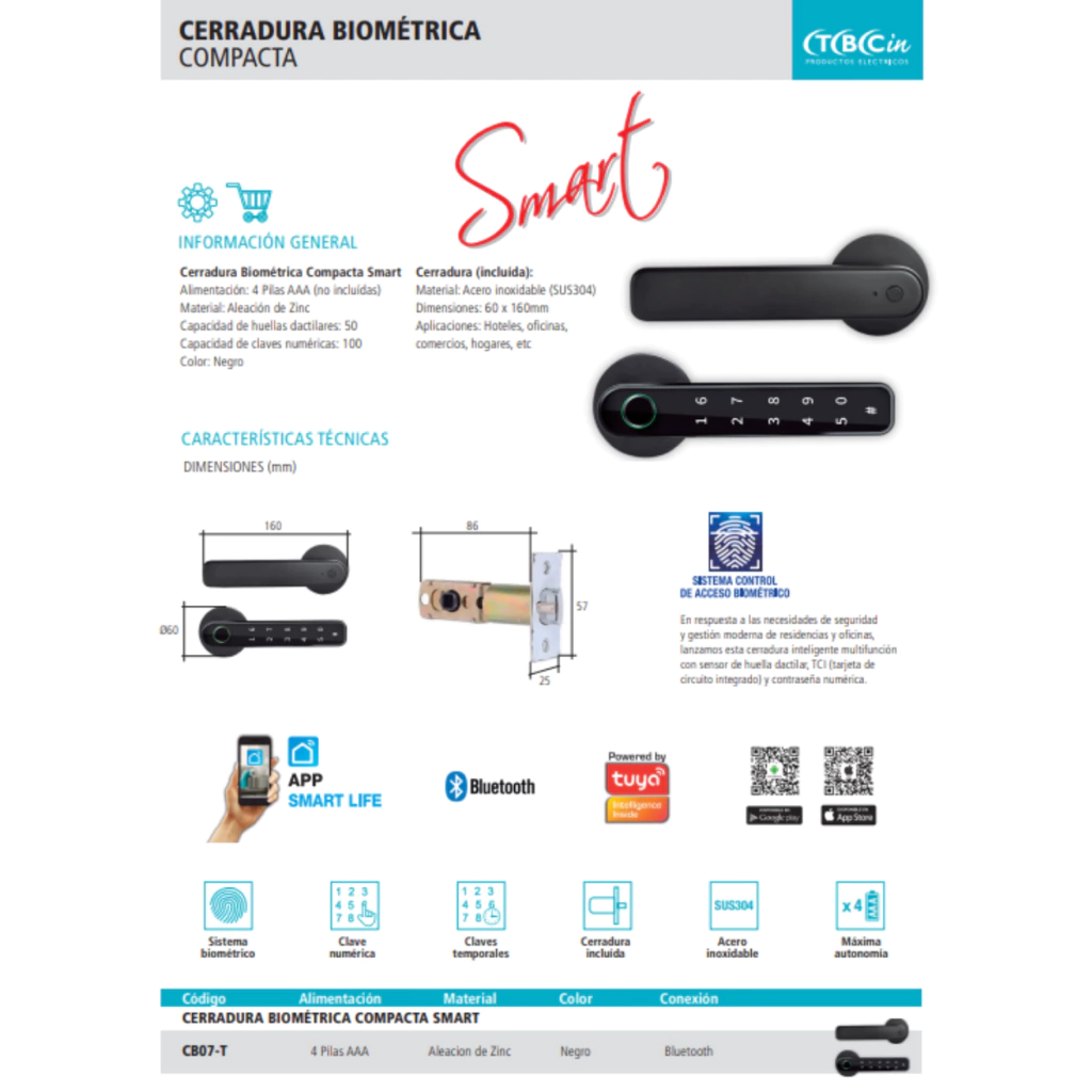 Cerradura Biométrica Compacta Smart