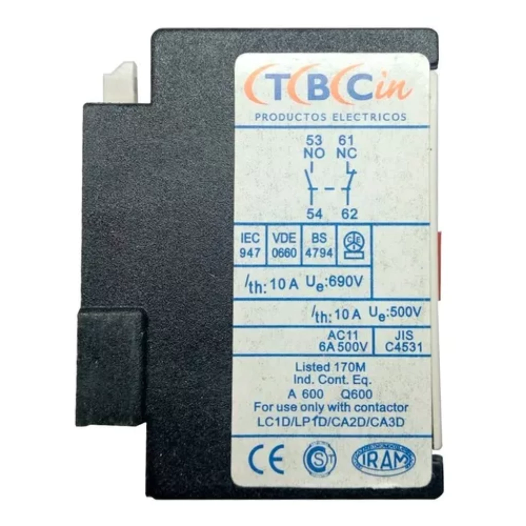 Aplicaciones: El Contacto Auxiliar Sassin TBCin es ideal para una amplia gama de aplicaciones industriales y comerciales donde se necesite un control preciso y fiable. Es especialmente útil en sistemas de automatización, paneles de control y en sistemas eléctricos que requieren un monitoreo y control más detallado. Gracias a su capacidad de manejar cargas mínimas, también es adecuado para aplicaciones de señalización y control de procesos.