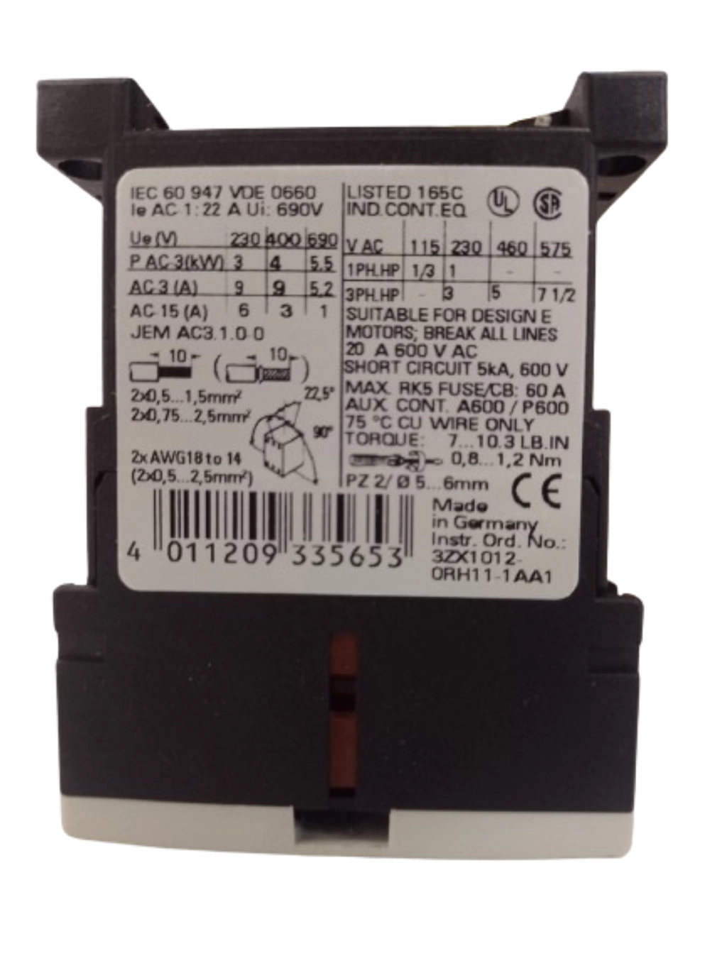 El Contactor Tripolar 9A 400VCA 3RT1016-1AV01 de Siemens es un dispositivo de potencia de alta calidad, ideal para el control y protección de motores en aplicaciones industriales. Con una construcción robusta y una fiabilidad excepcional, este contactor es perfecto para sistemas que requieren maniobrar motores de forma eficiente y segura en diversas condiciones.