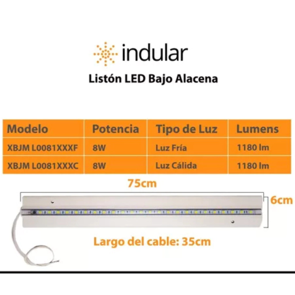 Listón LED Bajo Alacena Extra Chato 8W 75cmx6cm Indular - Ilumina tu espacio con eficiencia y estilo