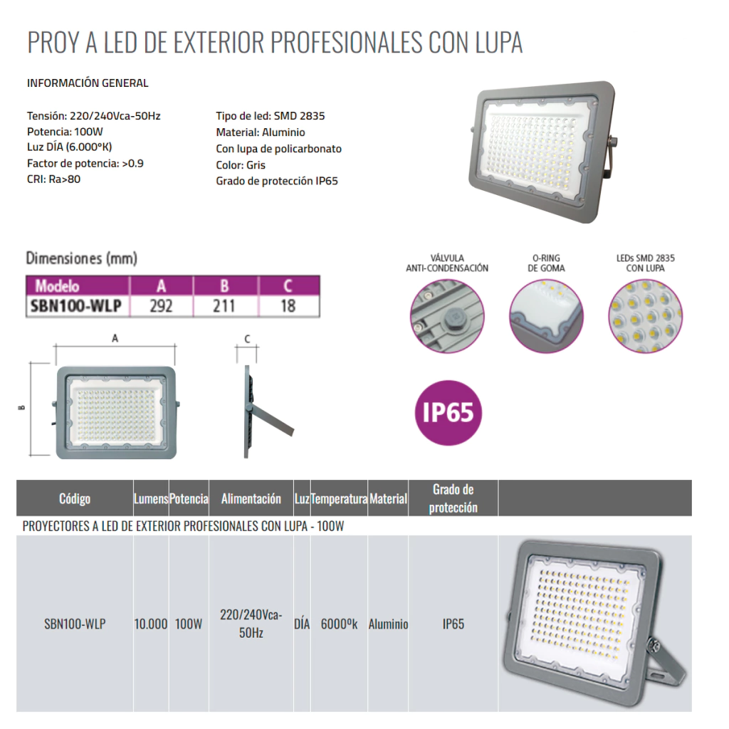 Reflector LED 100W IP65 con lupa Apto Exterior TBCin – Potencia, eficiencia y durabilidad al aire libre
